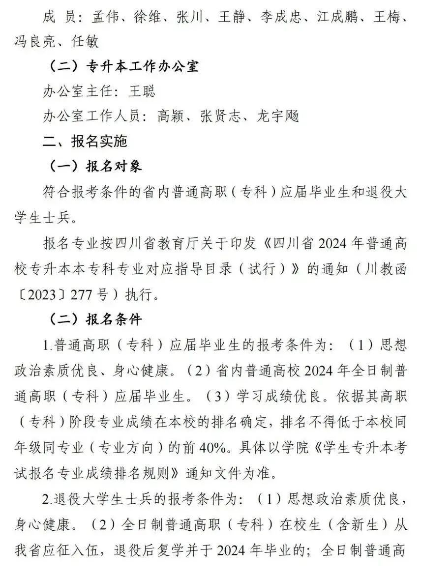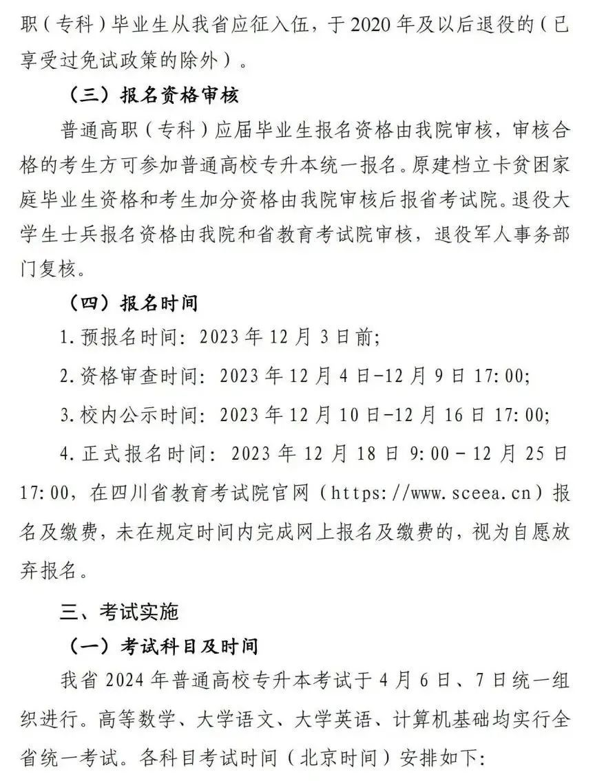 雅安职业技术学院2024年普通高等学校专升本考试实施方案的通知