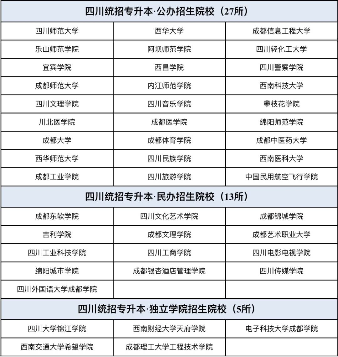 45所!四川统招专升本招生院校