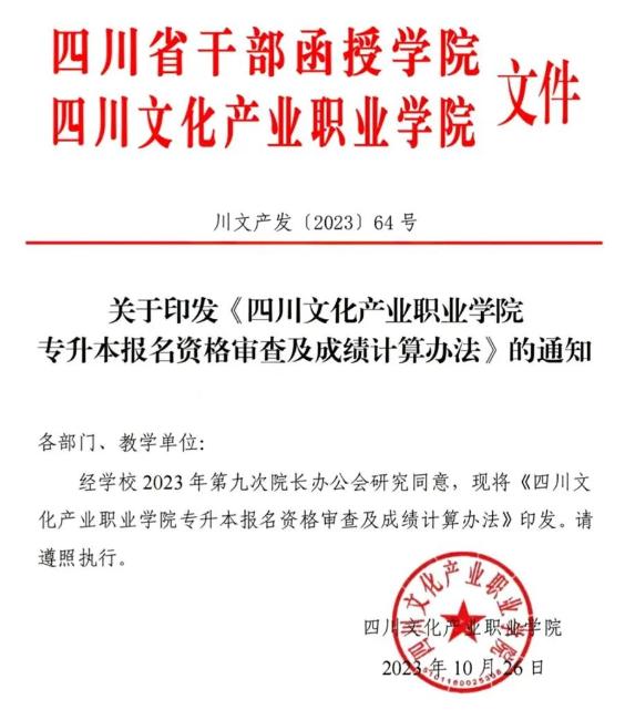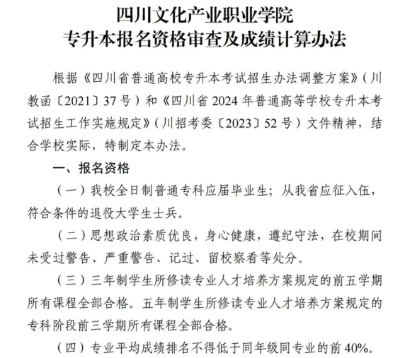 2024四川文化产业职业学院专升本成绩排名办法